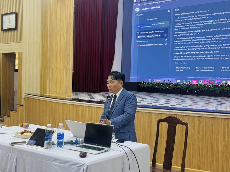 Phát biểu tại buổi tập huấn, TS. Phan Tuấn Anh – Phó Hiệu trưởng Nhà trường nhấn mạnh tầm quan trọng của việc ứng dụng trí tuệ nhân tạo trong đổi mới phương pháp giảng dạy; đồng thời ghi nhận tinh thần chủ động học hỏi, tiếp cận công nghệ mới của đội ngũ giảng viên. Lãnh đạo Nhà trường cũng gửi lời cảm ơn đến các chuyên gia từ Trường Kinh tế – Luật, ĐHQG TP.HCM vì những nội dung chia sẻ thiết thực và cập nhật.