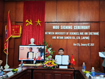 Sáng ngày 07/01/2021, Trường Đại học Khoa học (ĐHKH), Đại học Huế đã tổ chức Lễ ký kết trực tuyến thoả thuận hợp tác với Tập đoàn Mitani, Nhật Bản.