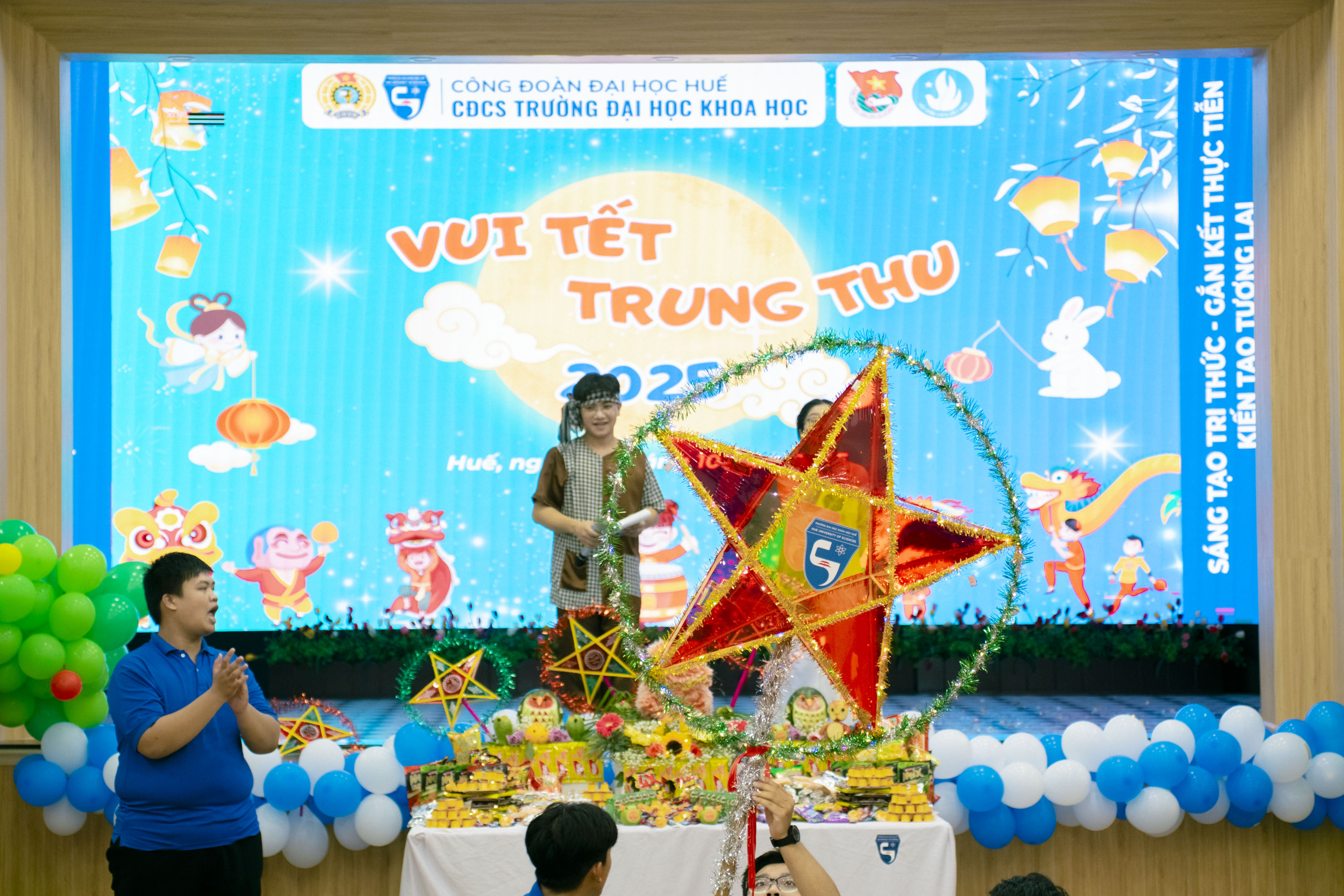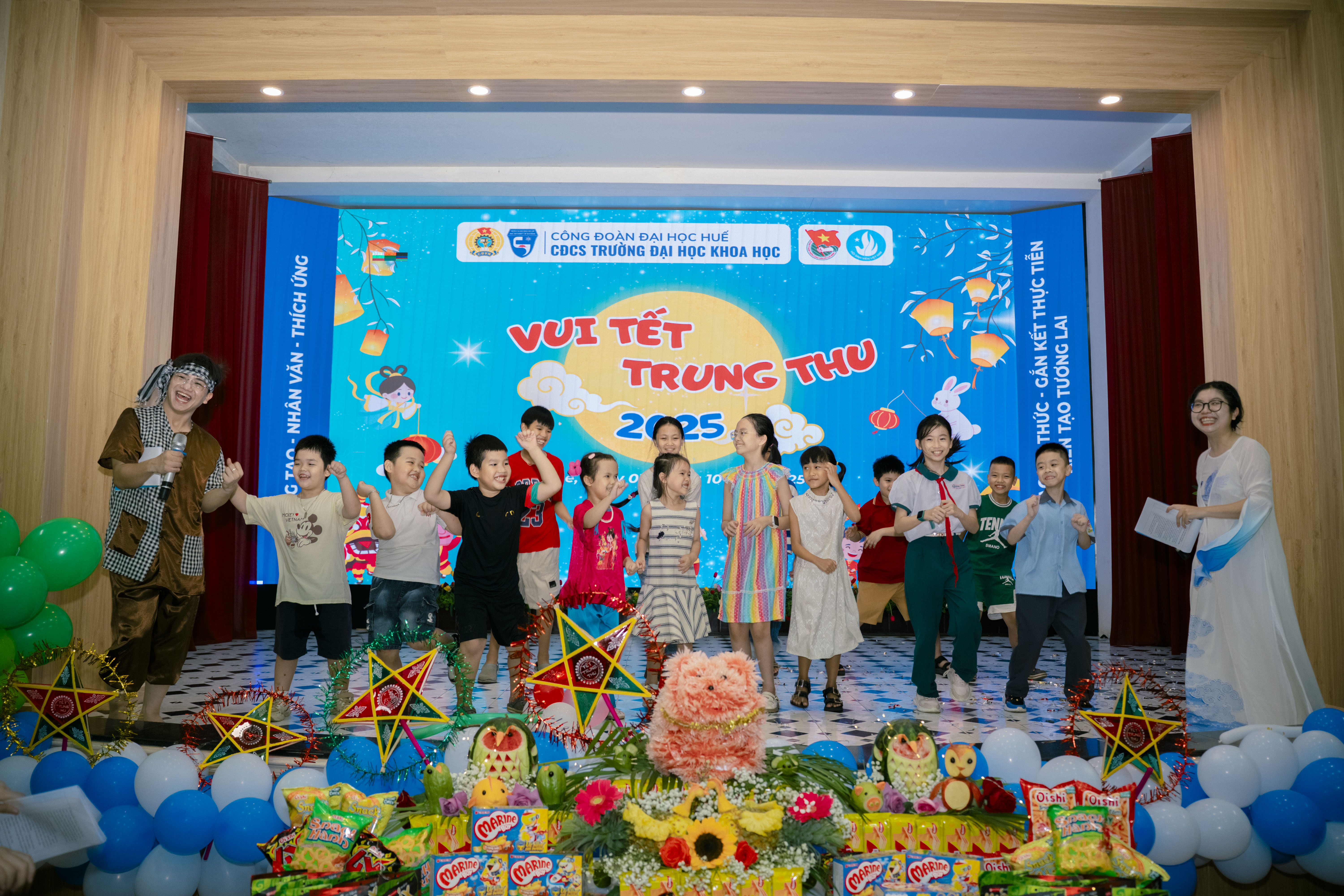Chiều ngày 03/10/2025, Công đoàn cơ sở Trường Đại học Khoa học phối hợp với Đoàn Thanh niên, Hội sinh viên Trường đã tổ chức hoạt động vui chơi cho 379 cháu là con của viên chức, người lao động nhân dịp Tết Trung thu năm 2025 tại Hội trường A1.