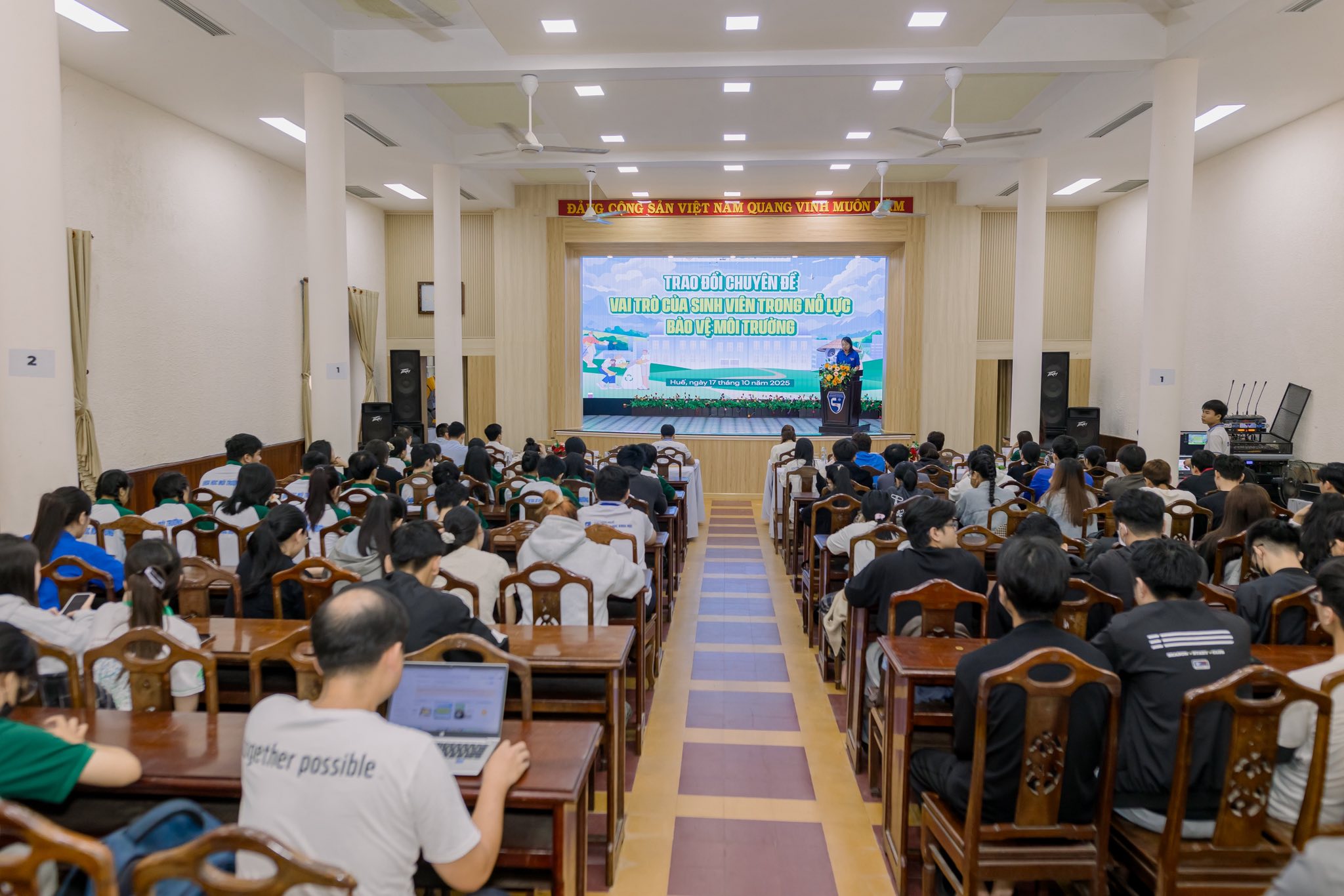 Sáng ngày 17/10/2025, tại Hội trường A1, Trường Đại học Khoa học, Đại học Huế đã diễn ra buổi trao đổi chuyên đề “Vai trò của sinh viên trong nỗ lực bảo vệ môi trường”, do Dự án TVA/WWF-Việt Nam phối hợp cùng Ban Chấp hành Đoàn Thanh niên – Hội Sinh viên Trường Đại học Khoa học tổ chức.