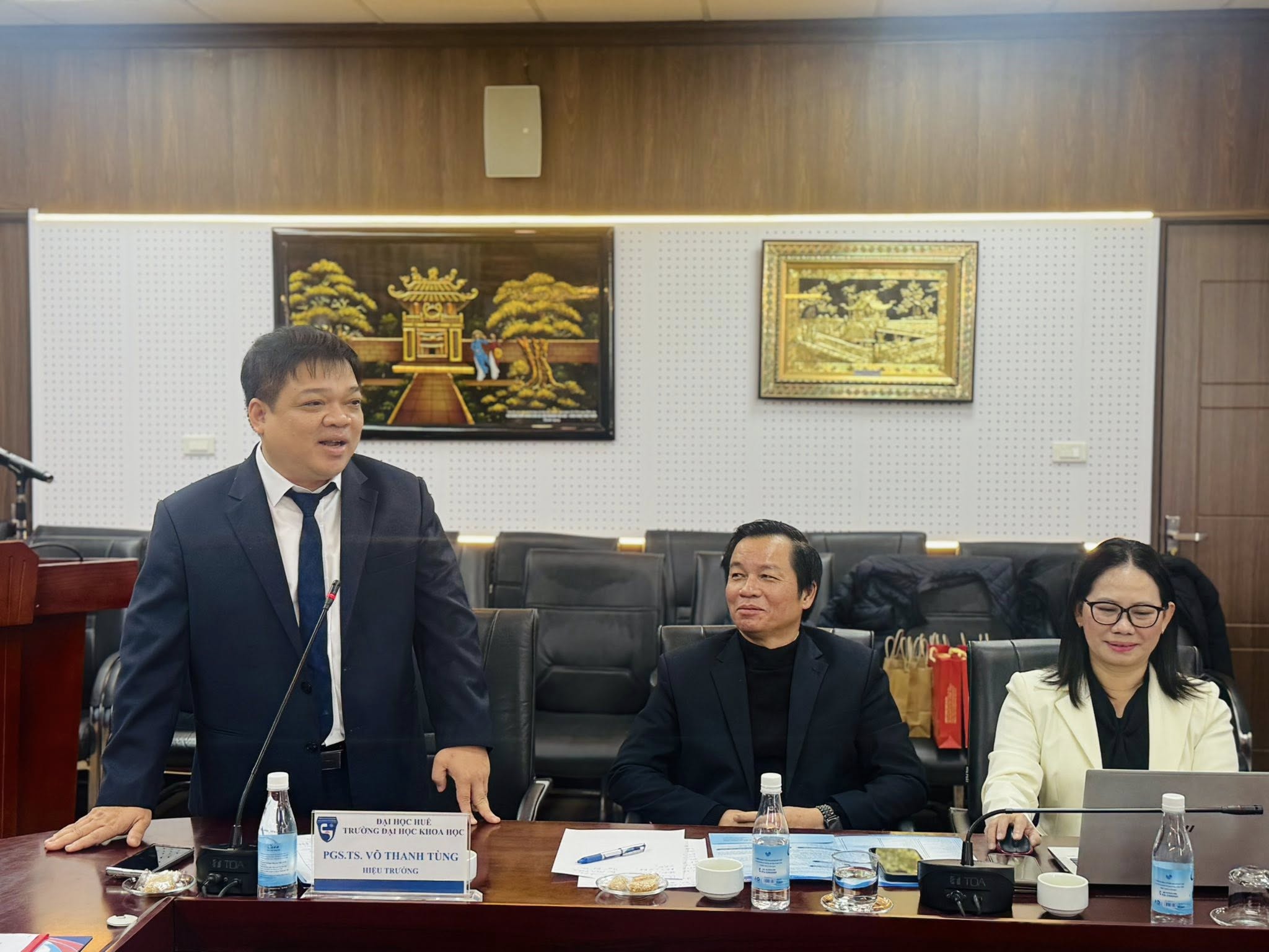 Tham dự buổi làm việc, về phía Học viện Khoa học và Công nghệ có GS.TS. Vũ Đình Lãm – Giám đốc Học viện; về phía Trường Đại học Khoa học, Đại học Huế có PGS.TS. Võ Thanh Tùng – Hiệu trưởng và PGS.TS. Trần Ngọc Tuyền – Phó Hiệu trưởng, cùng đại diện lãnh đạo, cán bộ và giảng viên của hai đơn vị.
