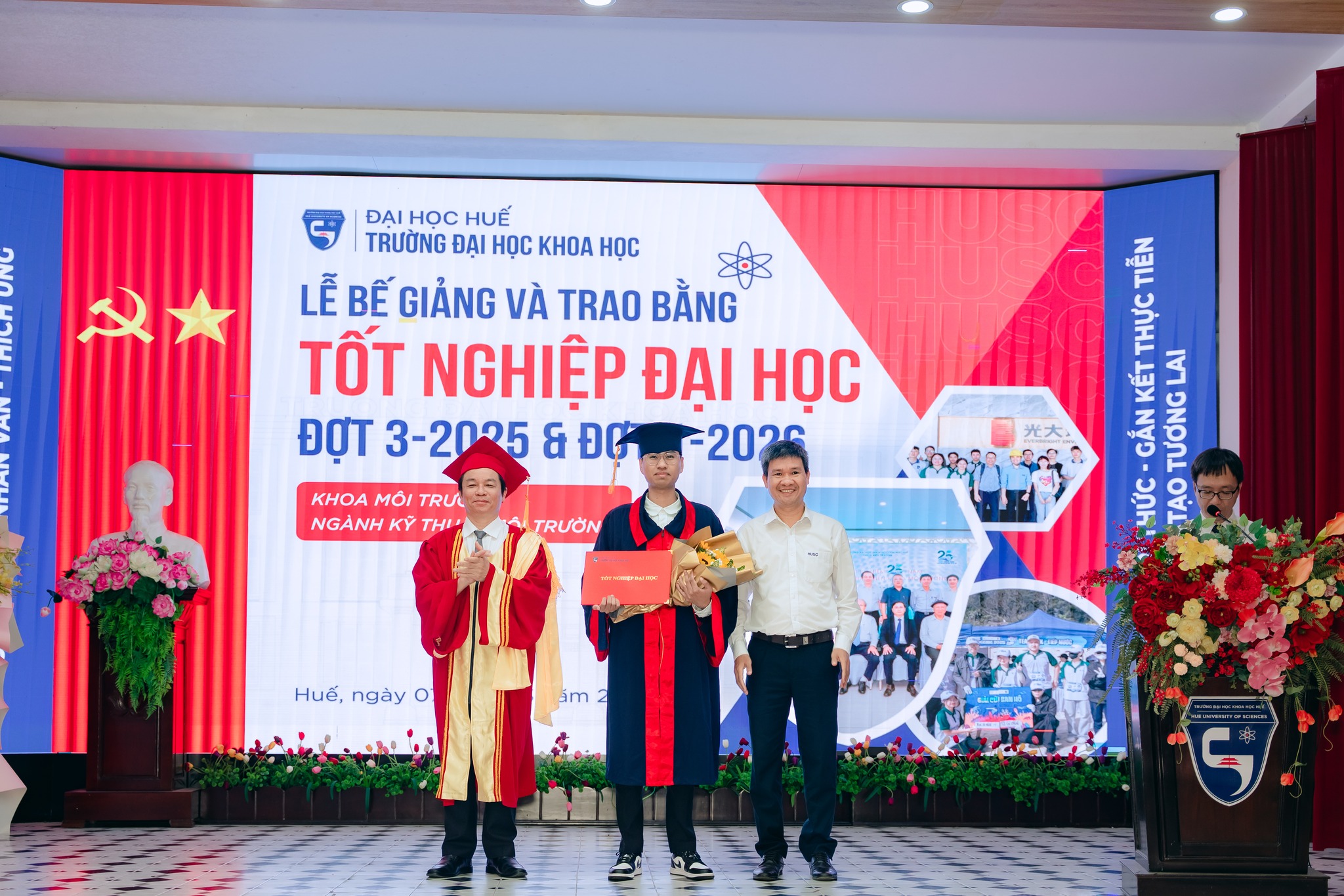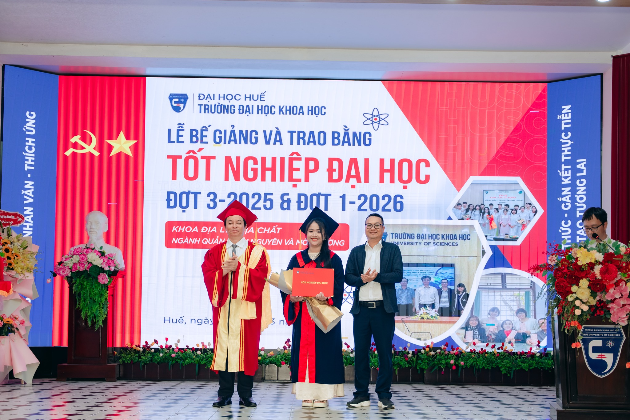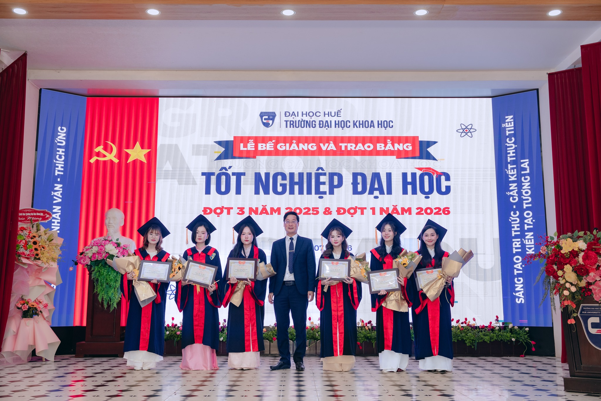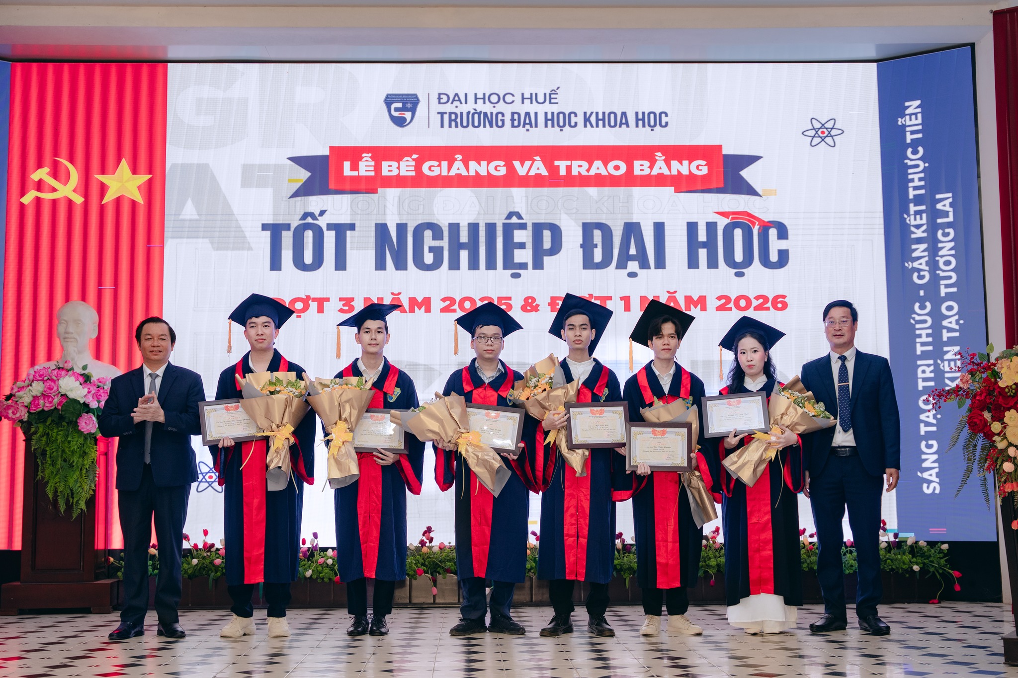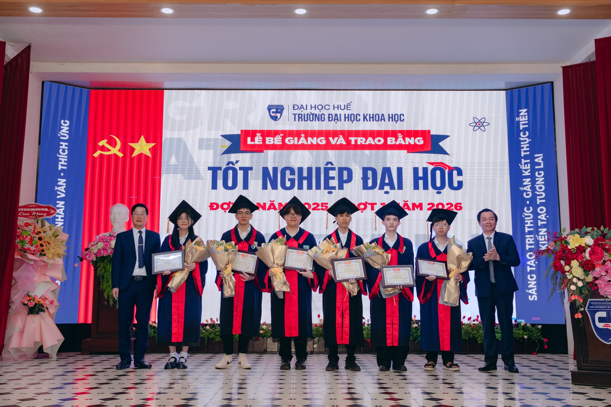 Sáng ngày 07/3/2026, Trường Đại học Khoa học, Đại học Huế đã long trọng tổ chức Lễ Bế giảng và Trao bằng tốt nghiệp đại học hệ chính quy đợt 3 năm 2025 và đợt 1 năm 2026 cho các sinh viên đã hoàn thành chương trình đào tạo.