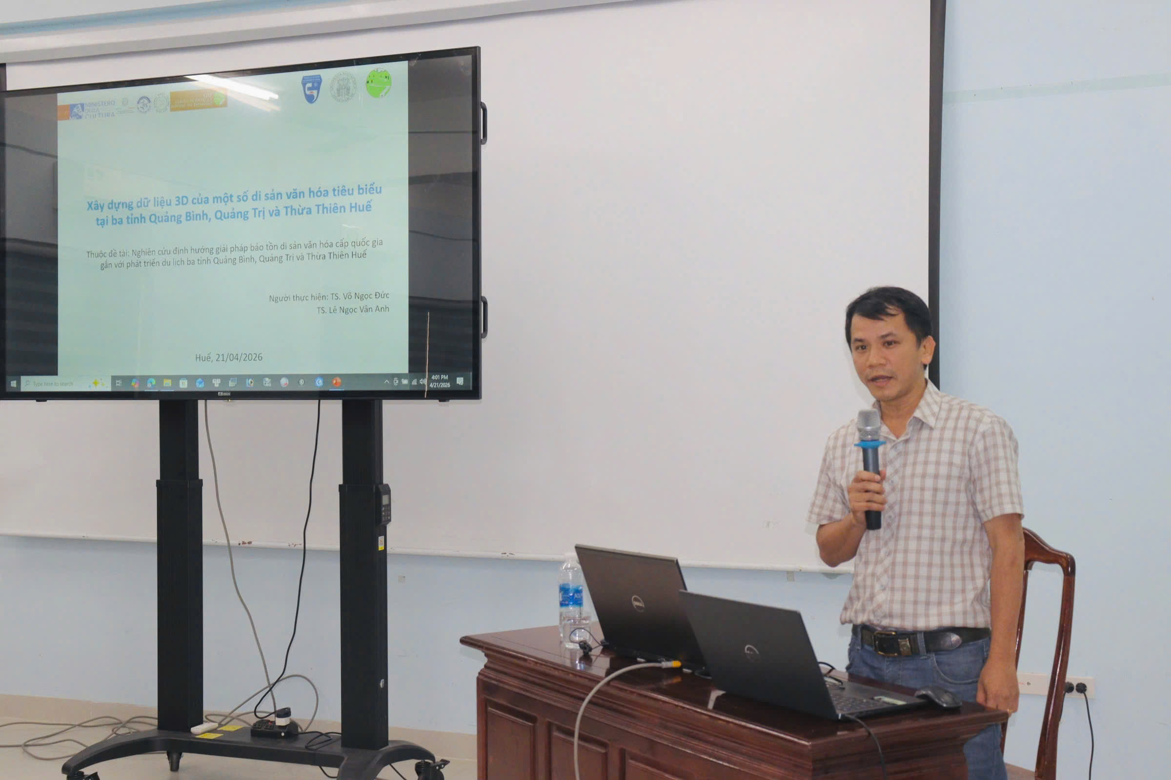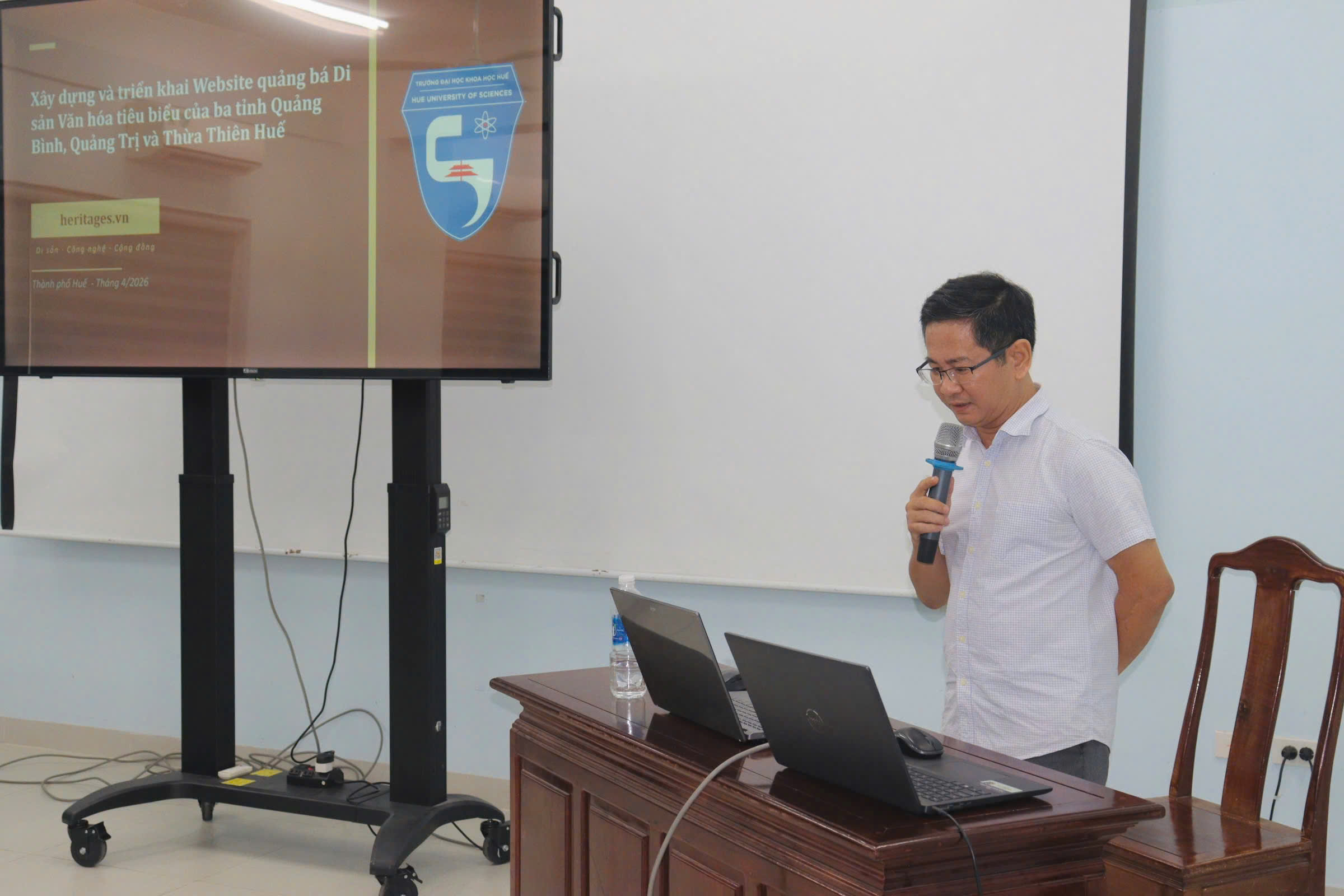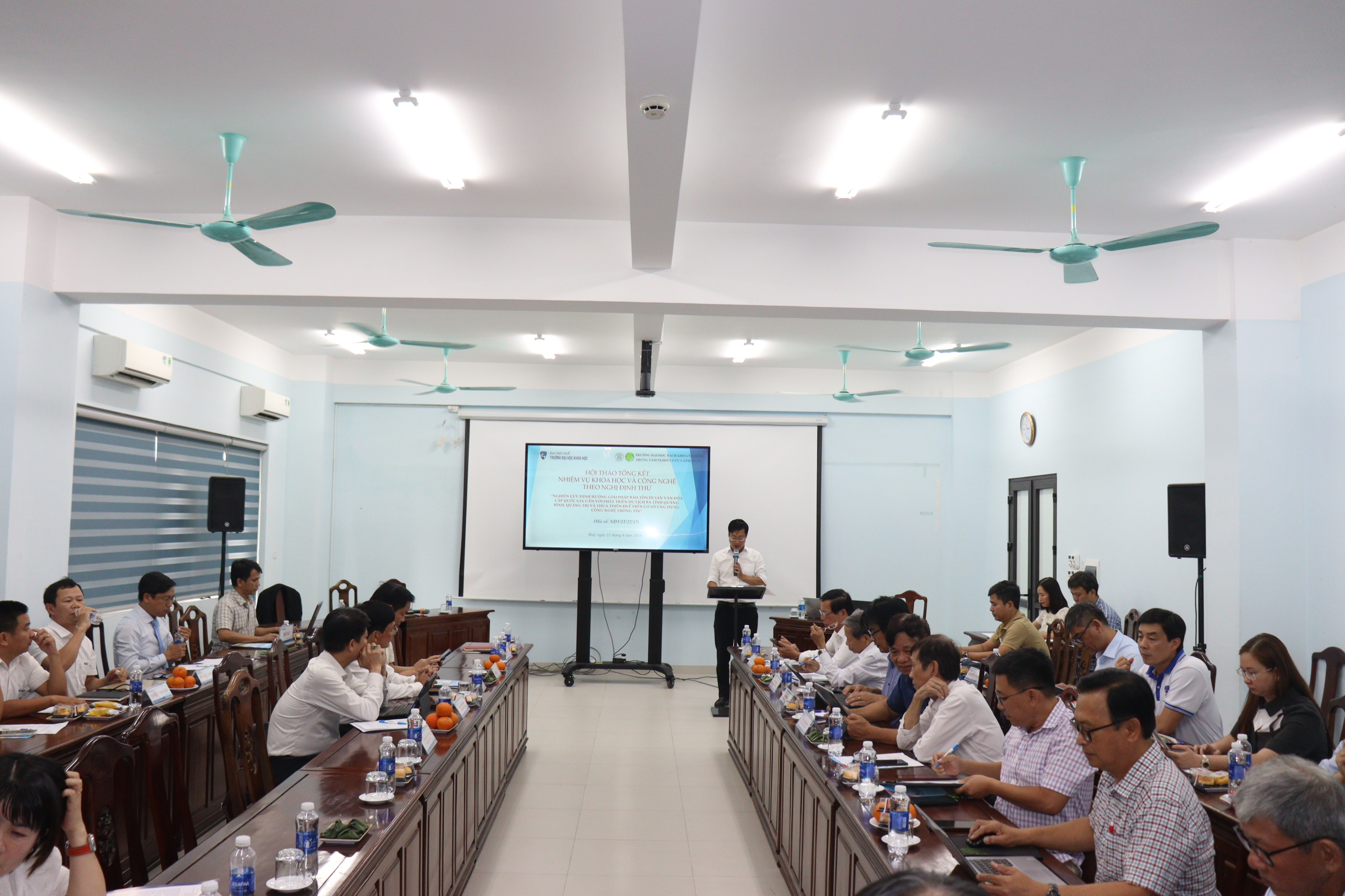 Từ 14 giờ 30 phút ngày 21/4/2026,  Trường Đại học Khoa học, Đại học Huế tổ chức Hội thảo Tổng kết Nhiệm vụ Khoa học và Công nghệ theo Nghị định thư “Nghiên cứu định hướng giải pháp bảo tồn di sản văn hóa cấp quốc gia gắn với phát triển du lịch ba tỉnh Quảng Bình, Quảng Trị và Thừa Thiên Huế trên cơ sở ứng dụng công nghệ thông tin” (The research of orientated solutions to preserve national cultural heritage associated with tourism development in Quang Binh, Quang Tri and Thua Thien Hue Provinces on the basic of information technology application) tại Khu vực nhà D - 77 Nguyễn Huệ, thành phố Huế, Trường. Hội thảo nằm trong khuôn khổ Nhiệm vụ Khoa học và Công nghệ theo Nghị định thư, Mã số NĐT/IT/22/17 hợp tác giữa Việt Nam và Italy do PGS.TS. Hoàng Văn Hiển làm Chủ nhiệm và Trường Đại học Khoa học là cơ quan chủ trì.