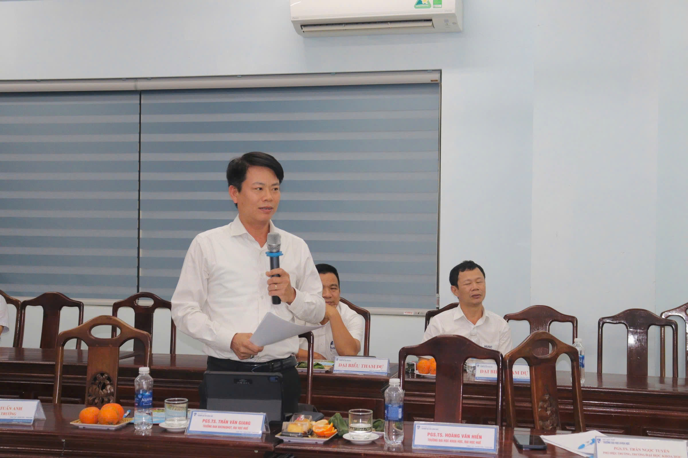 Về phía đại biểu ngoài trường có: PGS.TS. Đỗ Bang,  Phó Chủ tịch Hội Khoa học Lịch sử Việt Nam; TS. Trần Đình Hằng, Viện trưởng Phân viện Văn hóa Nghệ thuật Quốc gia Việt Nam tại Huế; TS. Phan Tiến Dũng, Chủ tịch Hội Khoa học Lịch sử thành phố Huế; TS. Trần Văn Dũng, Sở Văn hoá và Thể thao thành phố Huế; Ông Nguyễn Quang Chức, nguyên Giám đốc Trung tâm Quản lý Di tích và Bảo tàng tỉnh Quảng Trị (cũ); PGS.TS. Trần Văn Giang, Trưởng Ban Khoa học Công nghệ và Quan hệ quốc tế, Đại học Huế. Về phía Nhà trường có: TS. Bùi Quang Vũ, Bí thư Đảng ủy; PGS.TS. Trần Ngọc Tuyền, Phó Hiệu trưởng; TS. Phan Tuấn Anh, Phó Hiệu trưởng, PGS.TS. Huỳnh Thị Ánh Phương, Trưởng Phòng Khoa học Công nghệ, Hợp tác quốc tế và Thư viện cùng các đơn vị thuộc Trường Đại học Khoa học (các phòng Tổ chức và Hành chính, Kế hoạch Tài chính và Cơ sở Vật chất; các khoa Lịch sử, Kiến trúc, Công nghệ thông tin, Địa lý và Địa chất, Báo chí - Truyền thông, Ngữ Văn, Xã hội học và Công tác Xã hội); PGS.TS.Hoàng Văn Hiển, Chủ nhiệm Nhiệm vụ, Ban Chủ nhiệm và thành viên tham gia Nhiệm vụ hợp tác giữa hai trường cùng một số đại biểu khác.